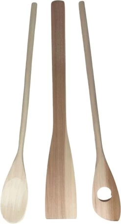 - Set van 3 houten spatels: 1 dichte pollepel, 1 platte spatel en 1 pollepel met roergat