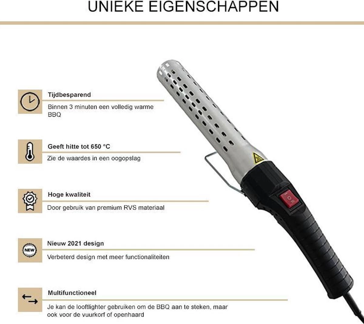 Wie kent het probleem niet? Je verheugt je op een leuke avond BBQ’en en na een zware werkdag gaat tot overmaat van ramp ook nog eens de BBQ niet gemakkelijk aan. Met deze Looftlighter is dit binnen ‘One Minute’ opgelost en geniet u van een fijne BBQ!