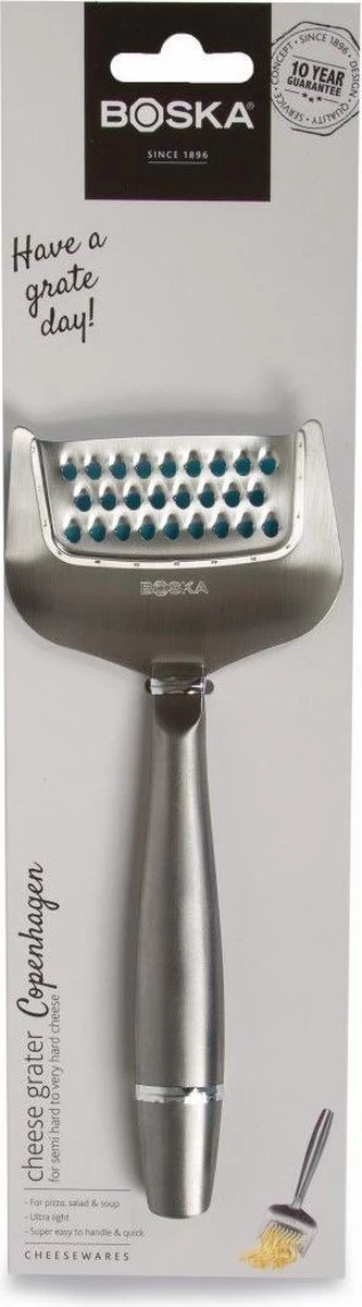 De rasp is volledig van roestvrijstaal gemaakt, wat hem vaatwasserbestendig maakt. Na gebruik is hij dus zo weer schoon! Je krijgt standaard 10 jaar garantie op de Kaasrasp Copenhagen van BOSKA. Zo geniet je nog jarenlang van de heerlijkste, geraspte kaas.