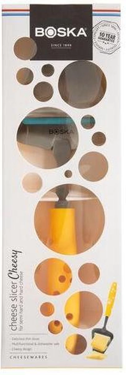 Er zijn kaasschaven in allerlei soorten, kleuren en maten. Maar de Kaasschaaf Cheesy van BOSKA is uniek in zโn soort. Fantastisch voor wie het design met knipoog wel weet te waarderen. Schaaf soepel door harde kazen, komkommer en wortel. Net zo makkelijk! Een kleurrijke aanvulling in jouw keukenlade of verrassend cadeau voor die ene verjaardag. Het grappige design van de Kaasschaaf Cheesy van BOSKA is niet cheesy. Een kaasschaaf met kaasdesign, logisch en toch origineel. Een opvallend item in ieder huishouden. Ben jij ook helemaal gek op kaas of wil je een creatief kado geven? Kies de Kaasschaaf Cheesy.