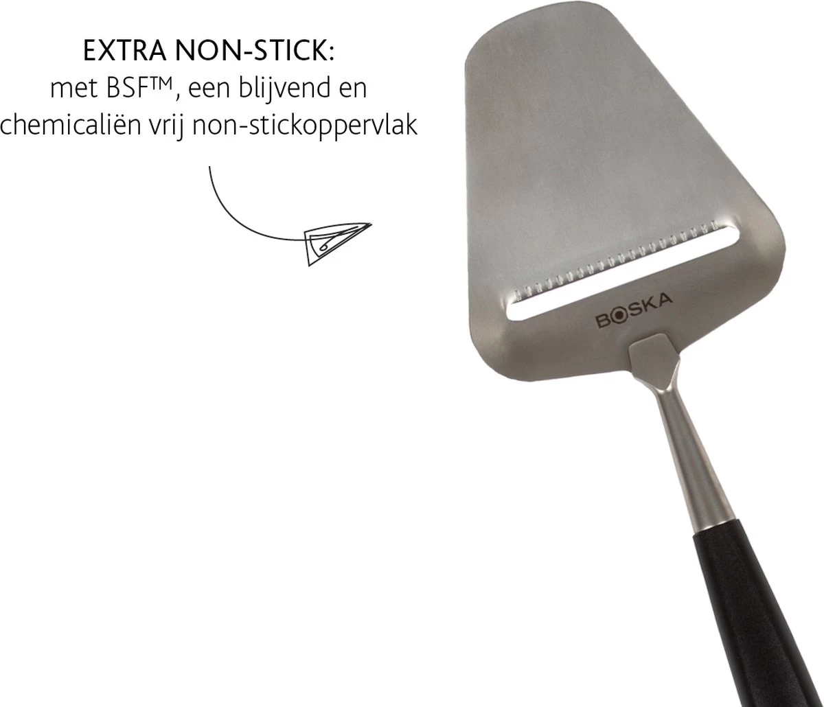 Deze alleskunner van BOSKA doet precies wat jij wilt. Houd je van een dunne plak? Geen probleem. Toch een keer een wat stevigere plak? Buig het schaafblad een beetje, leg je hand om het extra lange handvat en schaven maar. Door de non-sticking afwerking en nieuwe tandjes op het schaafblad, wordt zelfs het schaven al een feestje.