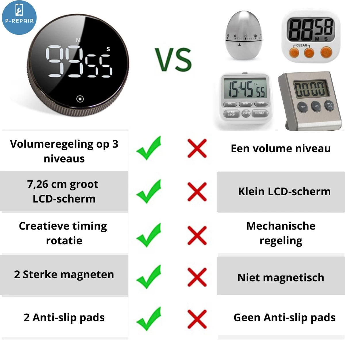Door het moderne maar toch simpele design, is deze timer zeer gemakkelijk in gebruik en makkelijk in je tas of broekzak mee te nemen!