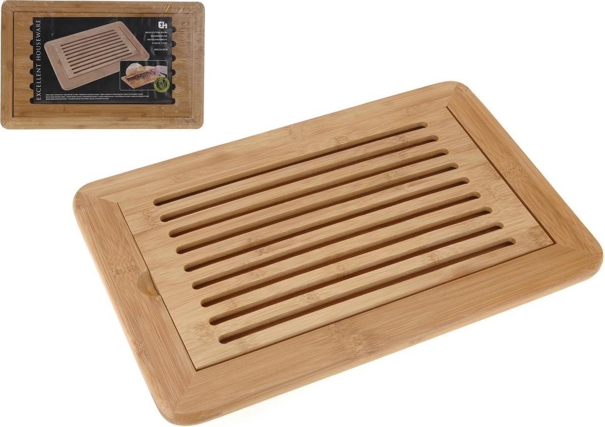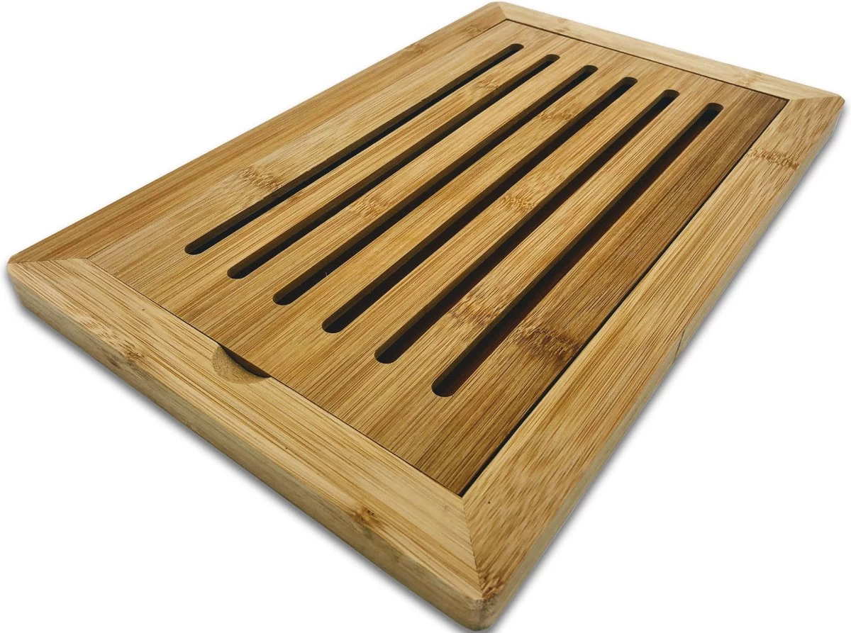 De broodsnijplank van bamboe bestaat uit 2 delen, namelijk een rooster en een opvangplank. Zo zal het rooster precies in de opvangplank komen te liggen wanneer het brood wordt gesneden en vallen de broodkruimels door het raster in de opvangplank. Hierdoor komt het aanrecht niet vol te liggen met broodkruimels. De broodplank, gemaakt van bamboe, is doordat het gemaakt is van bamboe een stuk harder en dichter van houtstructuur. Hierdoor is de plank beter opgewassen tegen scherpe broodmessen én beter bestand tegen vocht. Door deze houteigenschap is de afbraak van bacteriën hoger dan bij andere houtsoorten en dat maakt deze plank ideaal voor gebruik in de keuken! De plank is af te wassen met warm water maar dient wel grondig te worden afgedroogd.