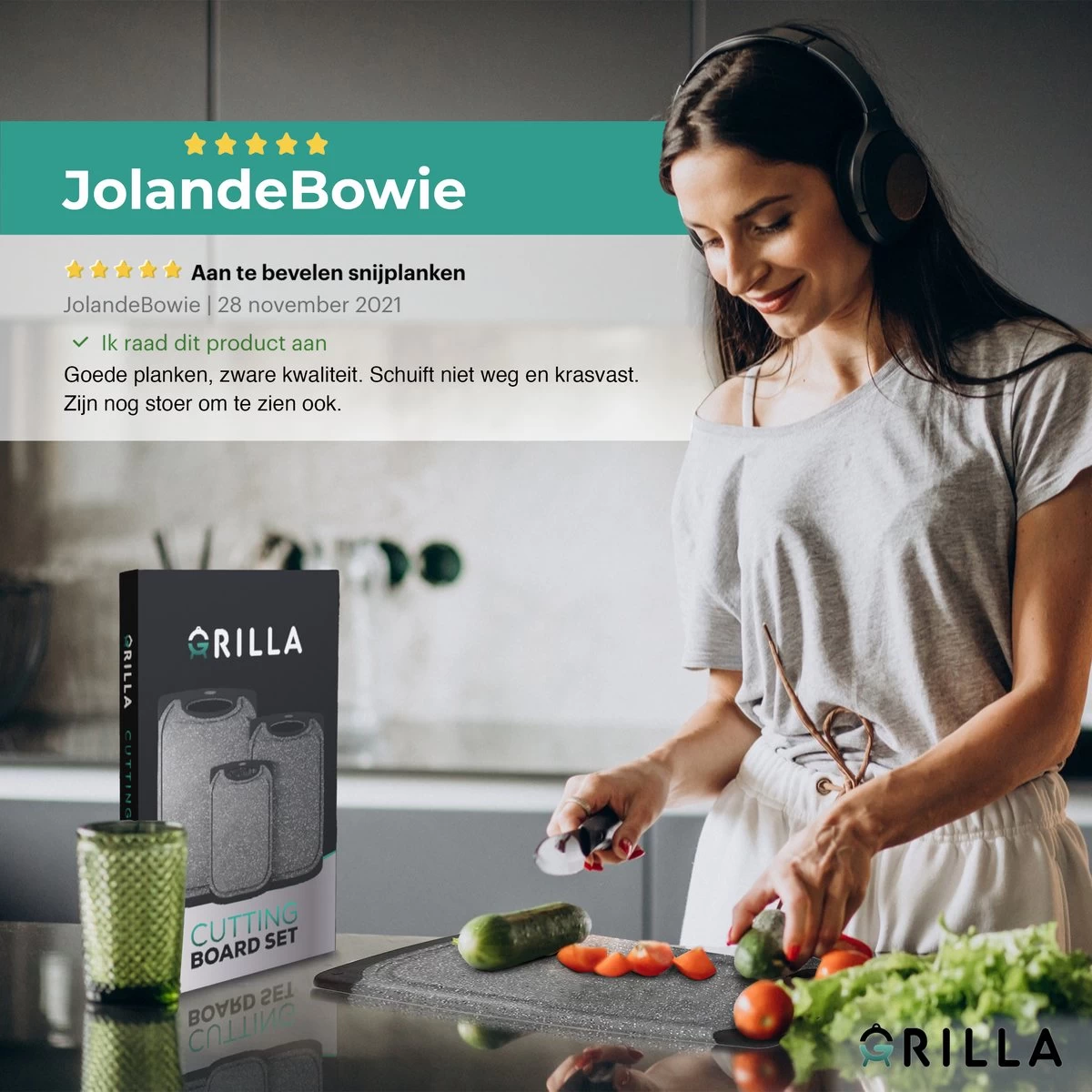 De Grilla snijplanken voor de keuken hebben diepe groeven die vlees en vruchtensappen opvangen. Zelfs tijdens de drukste kookmomenten is uw werkplek altijd schoon en overzichtelijk.