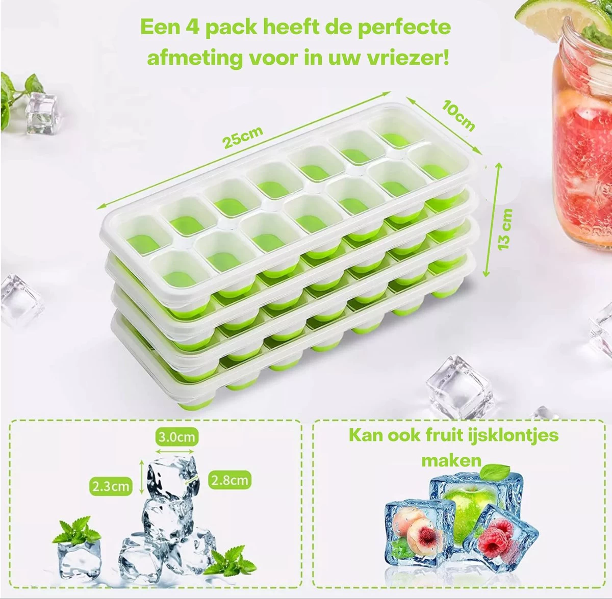 Per vorm kunnen 14 ijsblokjes worden gemaakt, dus in totaal heb je 56 ijsblokjes om voorraad. Super handig natuurlijk wanneer je een feestje organiseert of wanneer het een hete dag is.