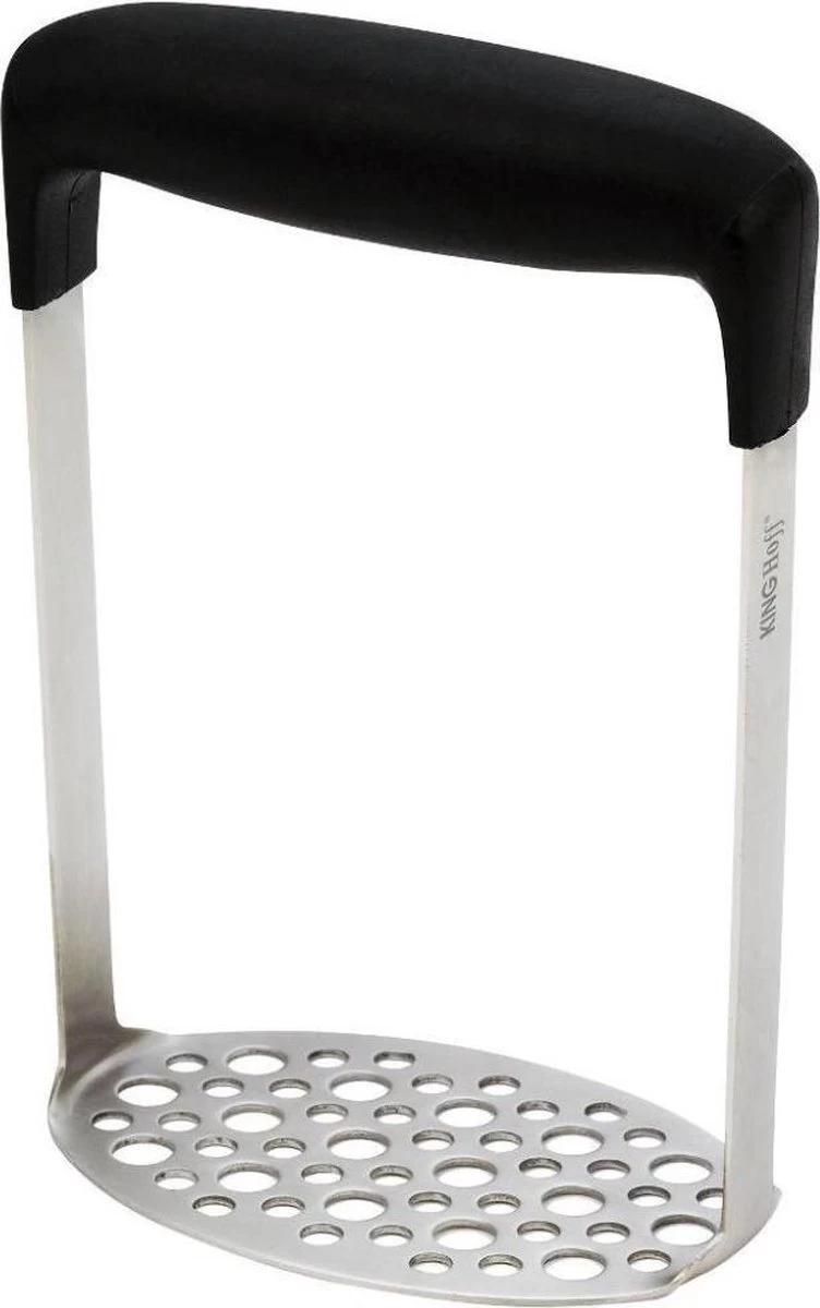 Deze handige en stijlvolle aardappelstamper van Kinghoff is onmisbaar voor het bereiden van onder andere stamppot. Je kunt heel eenvoudig gekookte aardappels of andere groenten fijn stampen. Deze sterke stamper is makkelijk schoon te maken of steek hem gerust in de vaatwasser.