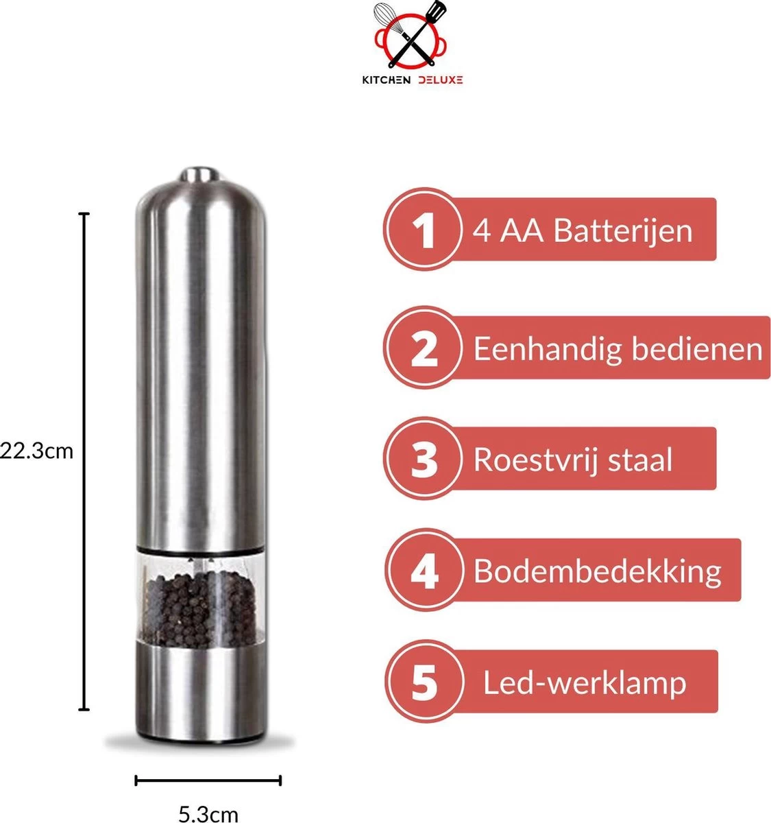 De grootste voordelen op een rijtje van de Kitchen Deluxe® zout- en pepermaler!