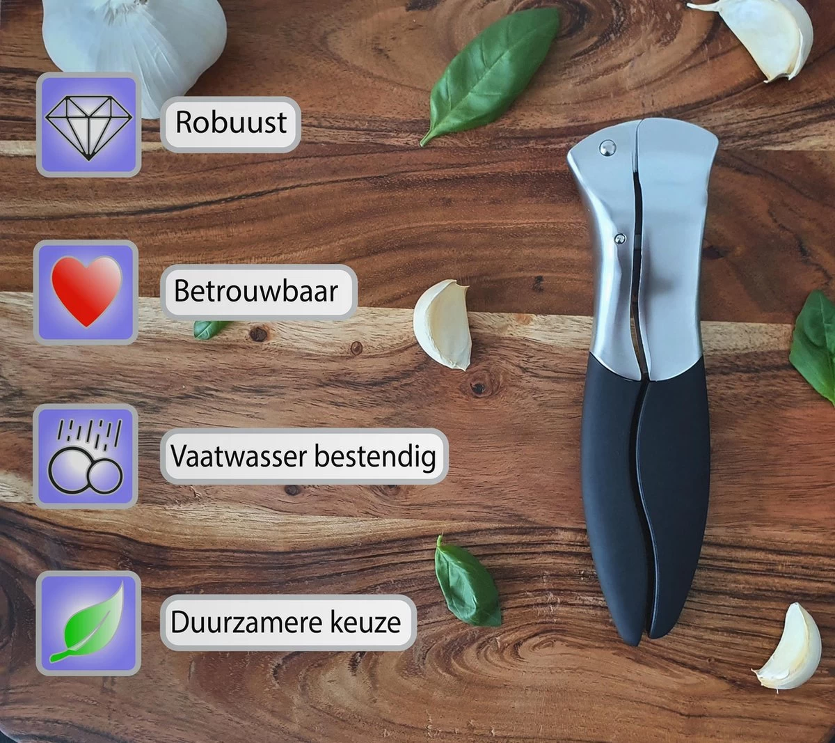 Knoflookpers heeft een perfecte pasvorm voor uw hand en heeft daarbij ook nog een zeer mooi design.