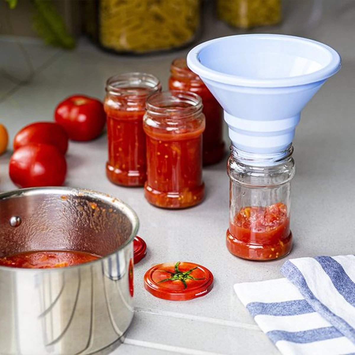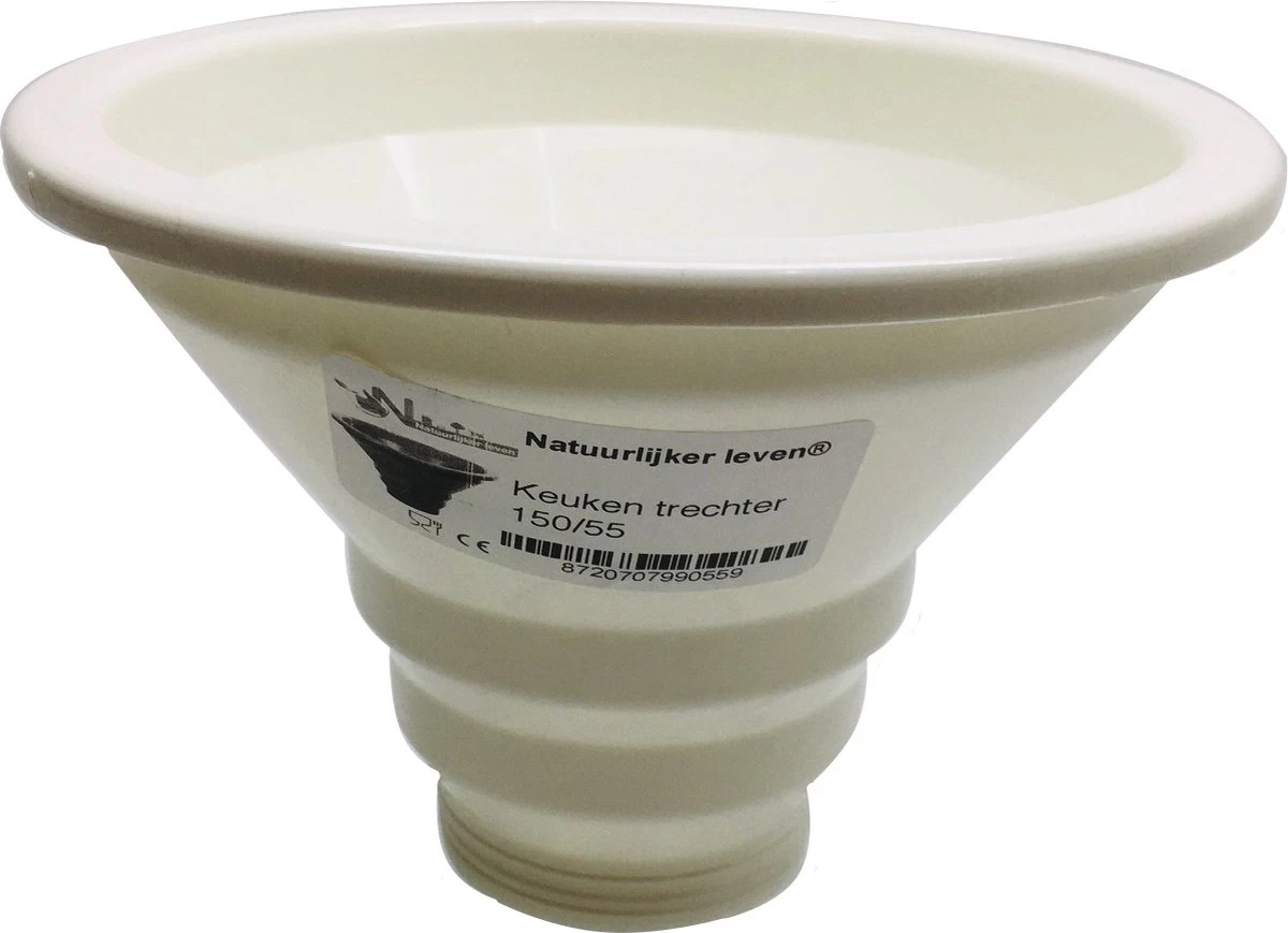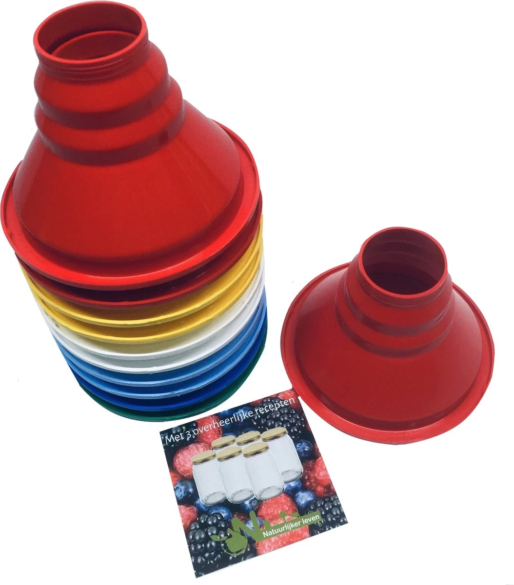 Stevige kunststof trechter van Natuurlijker leven voor het snel en éénvoudig afvullen van b.v. al uw confituur potten en sapflessen.