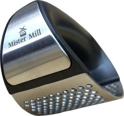 Mister Mill is een jong Nederlands bedrijf dat zich breed specialiseert in artikelen voor hobby, huisdieren en keuken. Hun productenlijn is herkenbaar aan het zwart/geel. Nu is deze knoflookpers niet geel, maar wel chic zwart met roestvrijstaal. De halfronde boog heeft een fijn stevig handvat waarmee je flink kracht kunt zetten. Deze knoflooksnijder werkt supermakkelijk en kan ook nog eens in de vaatwasser.