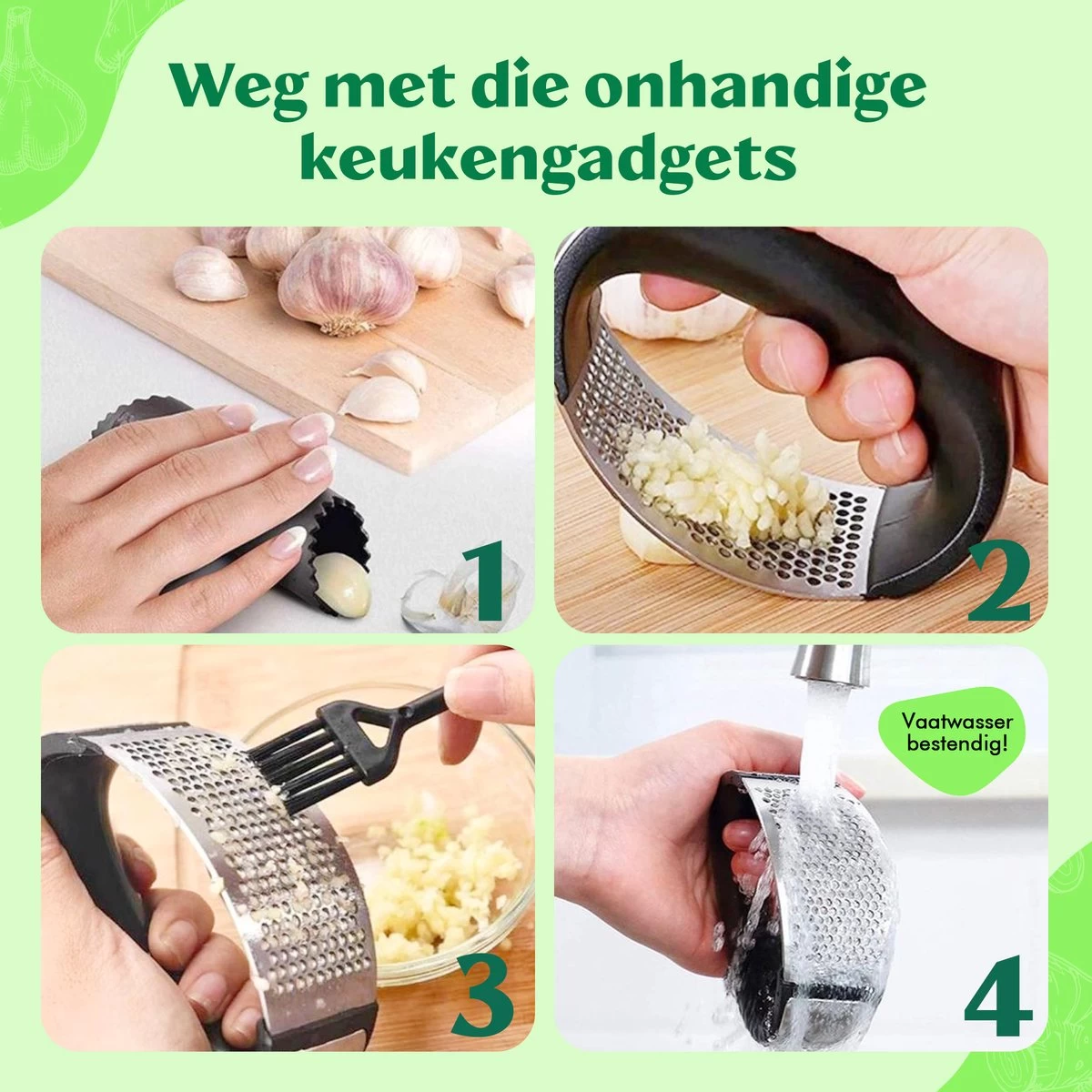 Nooit meer geklier met zo’n onhandige knoflookknijper!