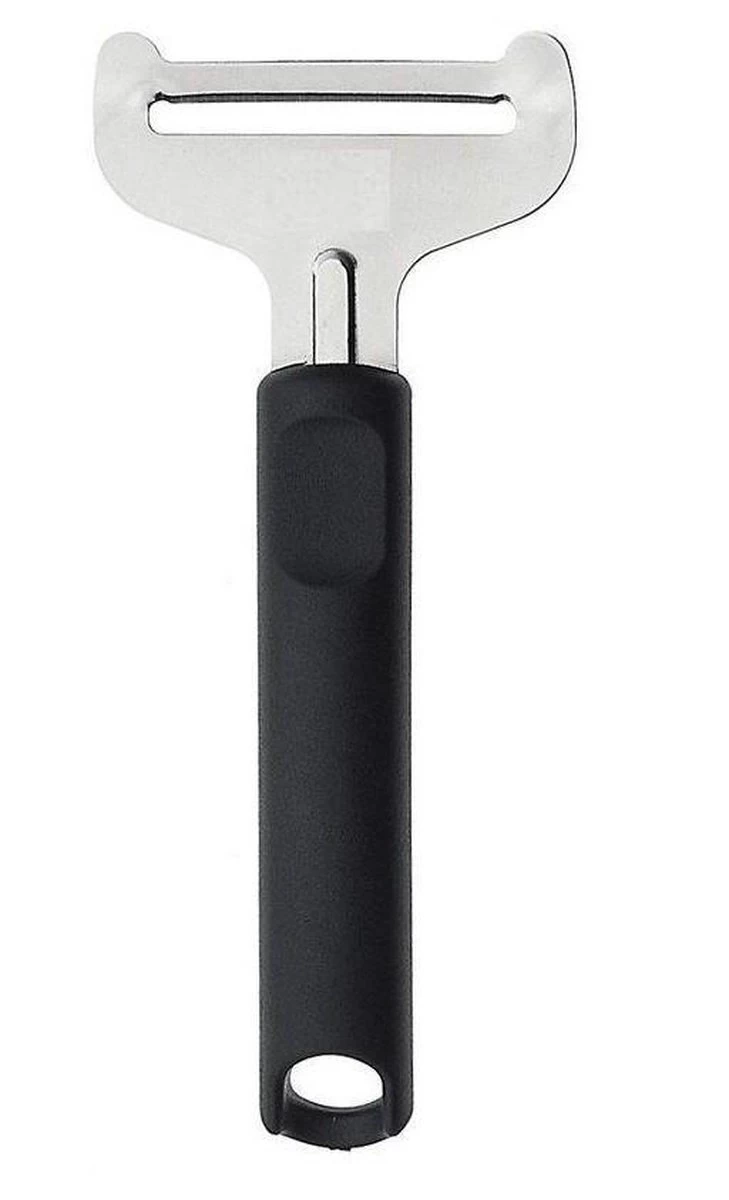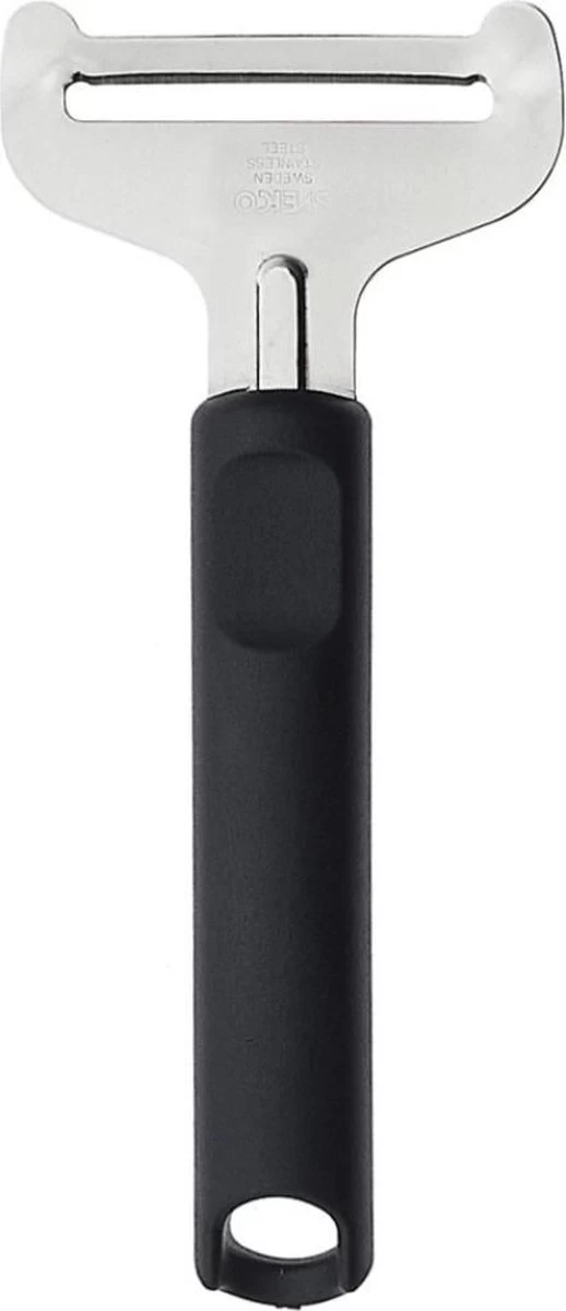 De jonge kaasschaaf van Sveico is perfect voor jonge kaassoorten: het uiterst korte lemmet zorgt ervoor dat de jonge kleverige kaas niet blijft plakken of gaat scheuren. De jonge kaasschaaf is gemaakt van dun, maar taai en flexibel Zweeds roestvrij staal. De dikte van de kaasplak kan eenvoudig worden bepaald door de stand van het snijvlak via druk op het handvat aan te passen. De kaasschaaf is vaatwasmachinebestendig. 17cm.