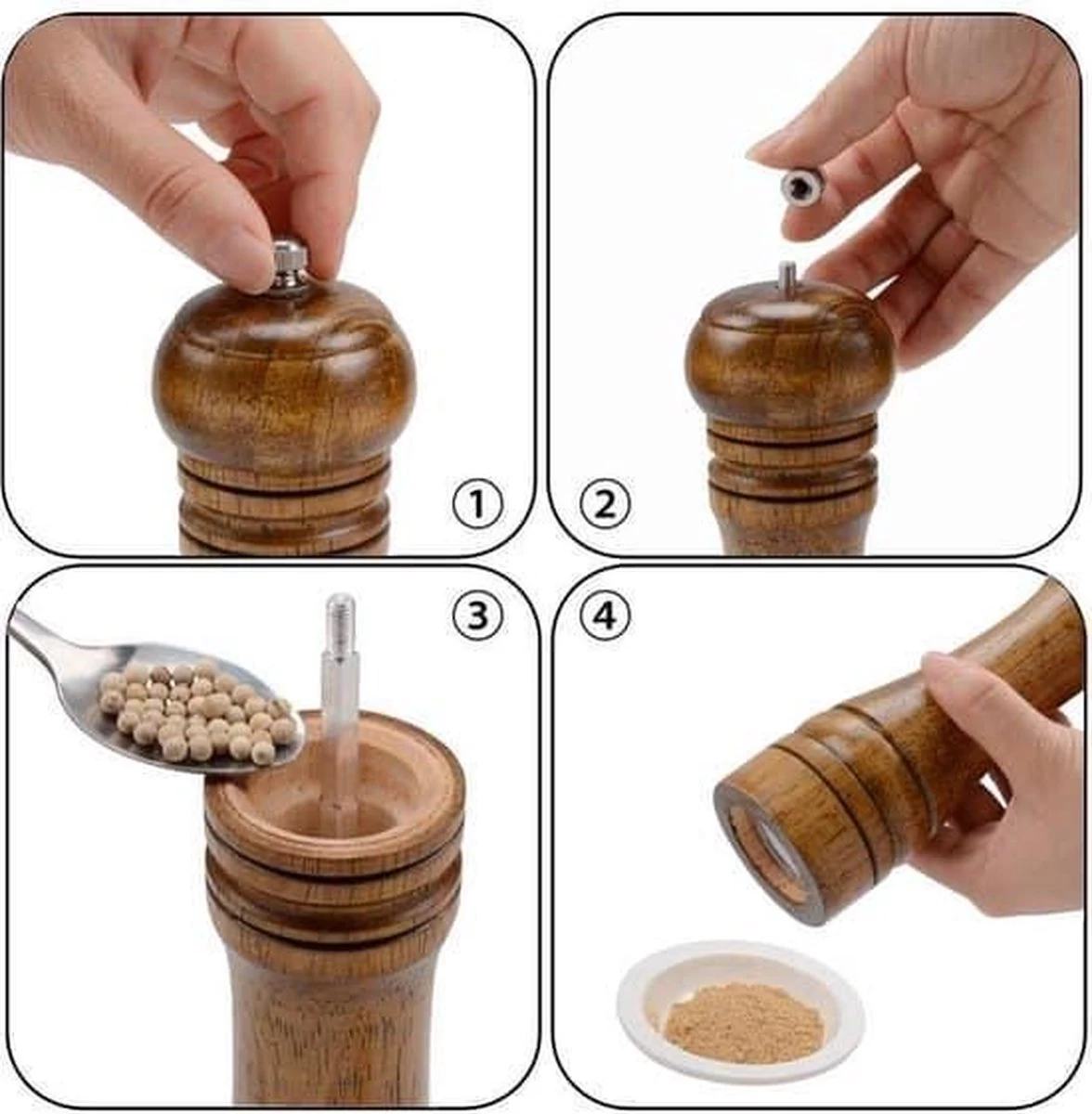 om de molens te vullen hoef je alleen de RVS schroef aan de bovenzijde los te draaien, vervolgens verwijder je het bovenste gedeelte & vul je de inhoud met een koffie of thee lepel.