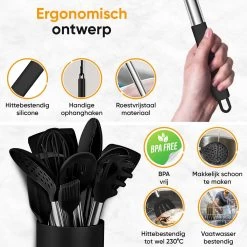 Strex Keukengerei Set Met Houder 15 Delig – Hittebestendig / BPA Vrij / Siliconen – Keuken Gerei