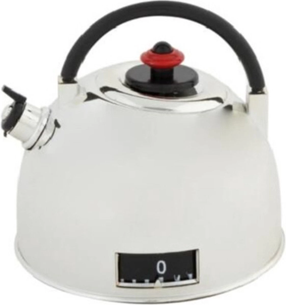 RVS kookwekker in fluitketel vorm. De kookwekker is per minuut instelbaar en kan tot 60 minuten ingesteld worden. Formaat: ca. 8 x 7,5 x 7 cm. Materiaal: ijzer. Keuken kookwekkers.