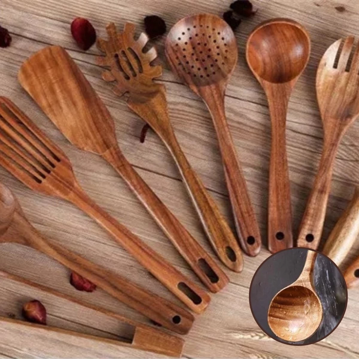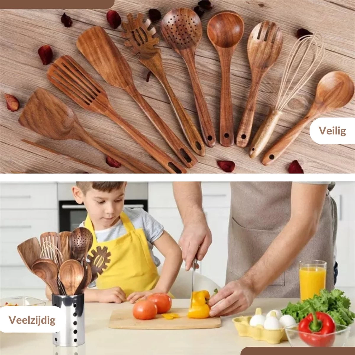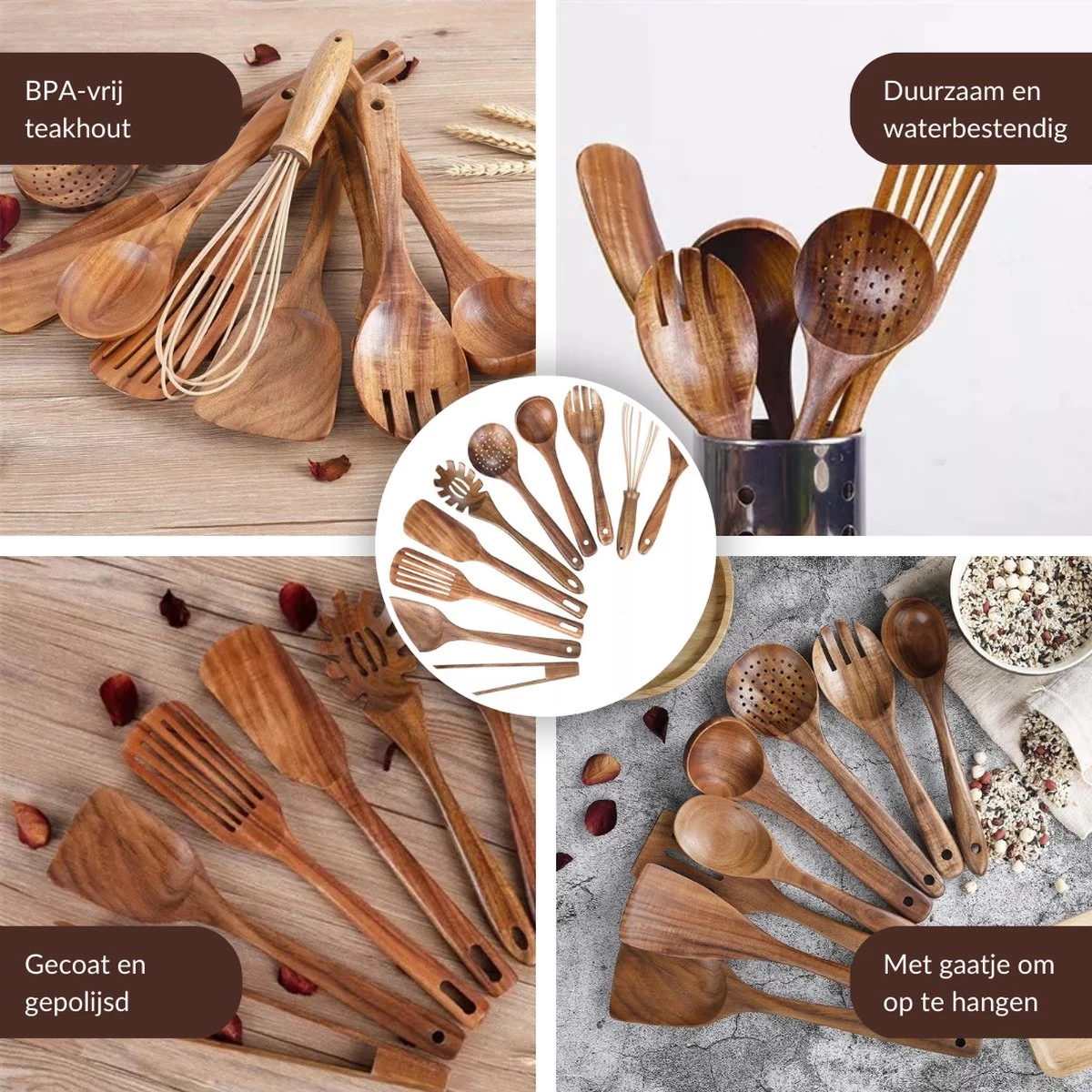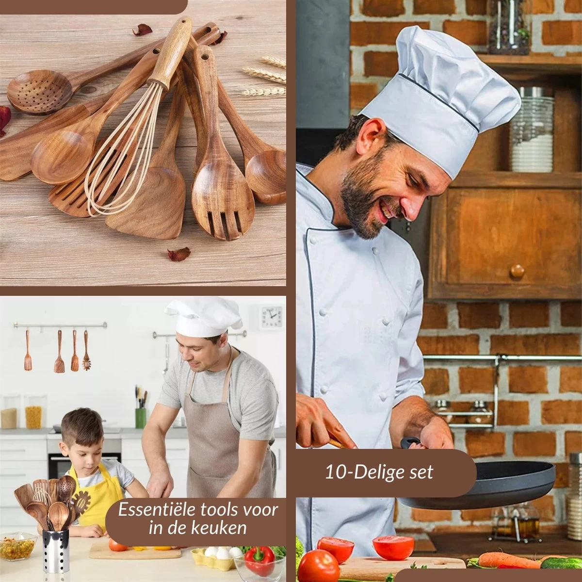 1 x Luxe Teakhouten keukengerei set 10-delig