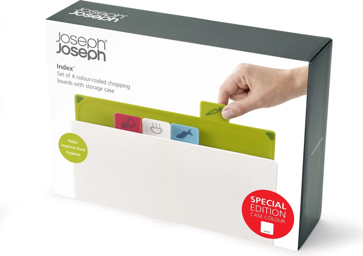 Snijplanken Set met Houder, Wit, Set van 4 Stuks – Joseph Joseph | Index Regular