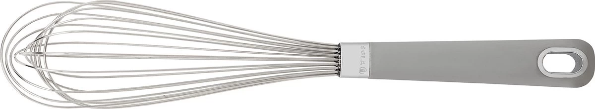 Deze Sola garde heeft een lengte van 31 cm en is voorzien van 10 roestvrij stalen draden waarmee u eenvoudig kunt mengen en opkloppen van uw gerecht. Het comfortabele handvat is gemaakt van siliconen en is vaatwasmachine bestendig. U kunt deze Sola garde makkelijk ophangen aan het verchroomde ophangoog.