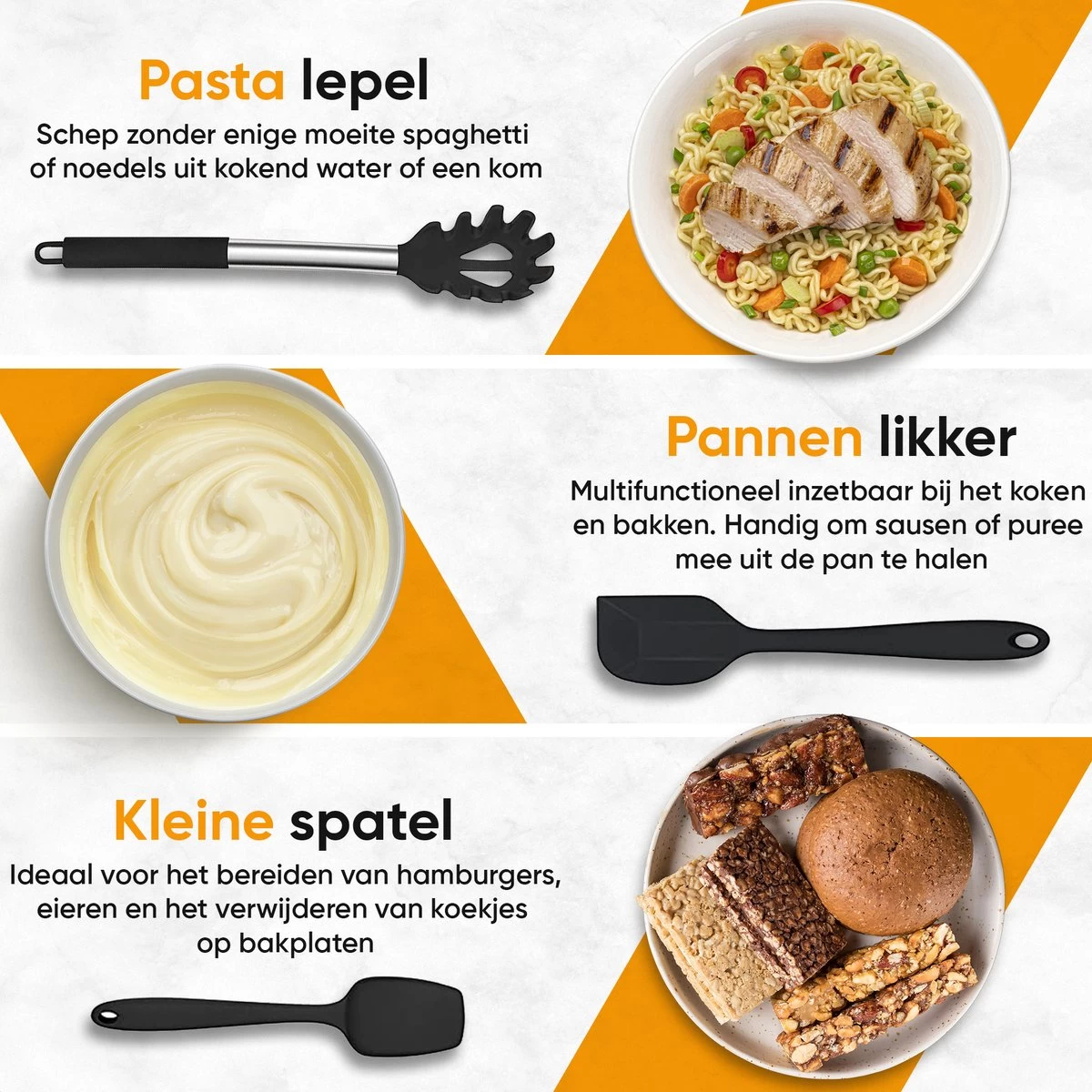 Ook zo gek op jouw non-stick pannen? Met ons siliconen keukengerei voorkom je schade en krassen. Elk onderdeel is van een siliconen laag voorzien & houdt jouw kookgerei zo in topconditie.