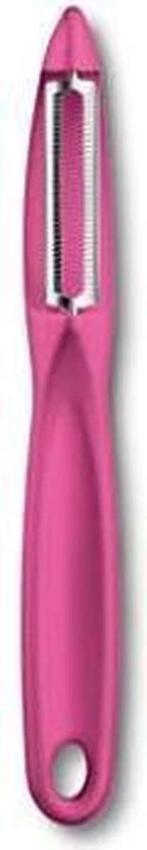 Universele dunschiller met kartel van Victorinox, fabrikant van het beroemde “Original Swiss Army Knife”. Schillen was nog nooit zo eenvoudig. Kies voor kleur en Zwitserse kwaliteit in de keuken! Levenslange Garantie. Geschikt voor links- en rechtshandigen. Roestvrij staal, heft van roze kunststof.