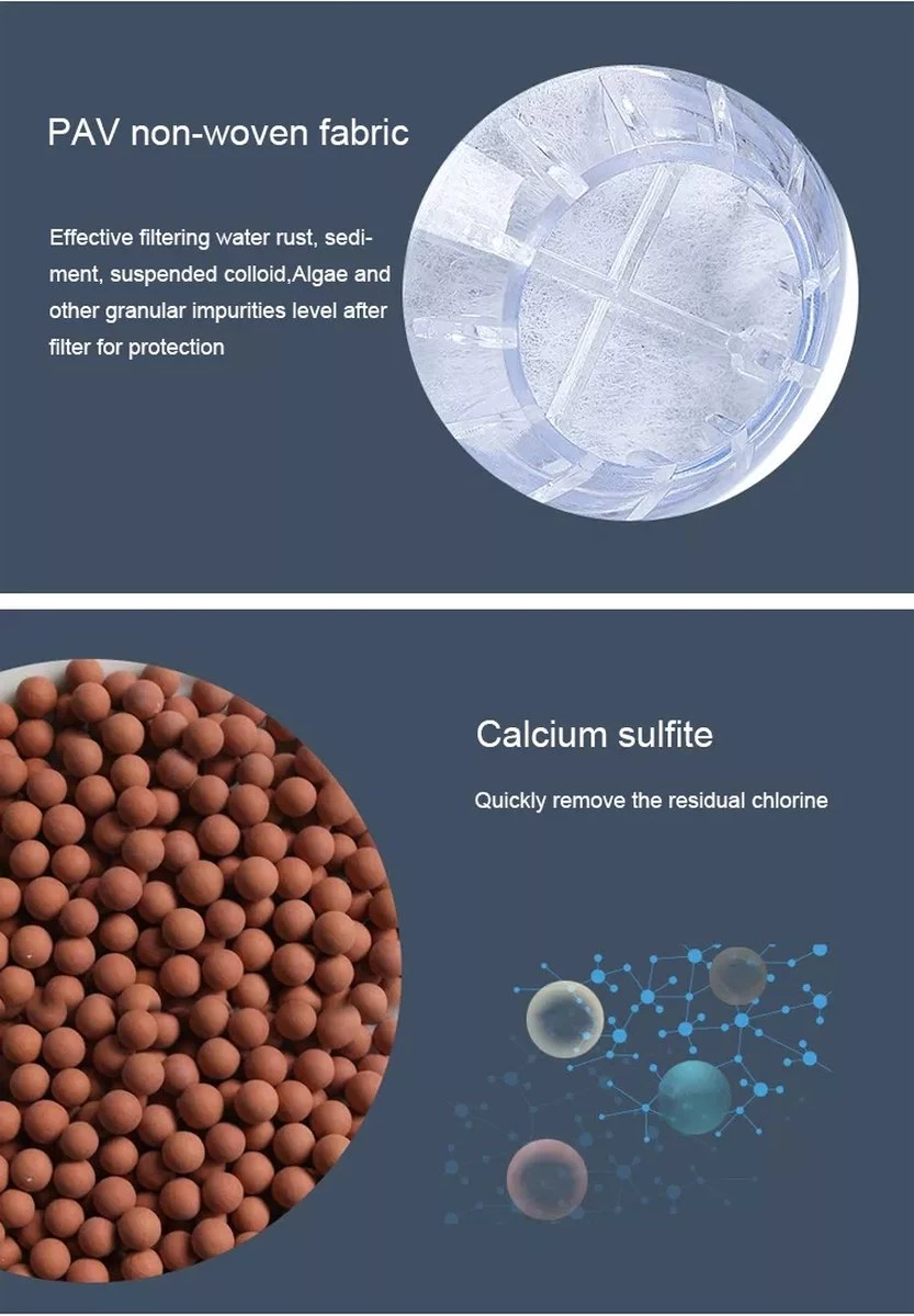 Laag 1: Niet-geweven PVC-filter ontworpen om vaste elementen en zichtbare verontreinigingen te filteren Laag 2: natuurlijk zeolieterts om chloor en onzuiverheden uit zware materialen te filteren Laag 3: Helende Parels Laag 4: Calciumsulfaat om organische verbindingen, giftige metaalionen, chloor, schadelijke bacteriรซn en virussen in het water te absorberen Laag 5: actieve kool om chloor, geuren en verschillende giftige en gevaarlijke stoffen te absorberen Laag 6: Niet-geweven PVC-filter voor het filteren van vaste elementen en zichtbare verontreinigingen